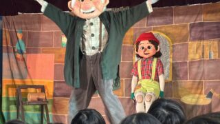 (公開)園ブログ 観劇会 劇団バンブーさんの『ピノキオ』の劇鑑賞がありました。楽しい劇で子ども達は夢中で見ていました。綱引き勝負をしたり、ピノキオや猫と触れ合い、写真撮影も出来ました。(R8.2.12) 2026.02.14 (公開)園ブログ